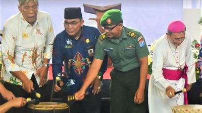 Sintang Kalbar, IndoTimeNews.com Dandim 1205/Sintang yang di wakili Lettu Inf Perry Raja Gukguk menghadiri Pembukaan Pesta Paduan Suara Gerejani (PESPARANI) Katolik tingkat I Kabupaten Sintang tahun 2024, di Indor Apang Semangai, Jalan Stadion, Baning Kota, Kecamatan Sintang, Kabupaten Sintang, Senin (14/10/2024).