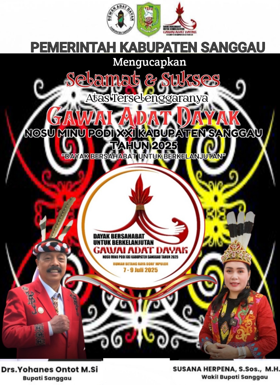 PEMERINTAH KABUPATEN SANGGAU MENGUCAPKAN SELAMAT DAN SUKSES ATAS TERSELENGGARANYA GAWAI ADAT DAYAK NOSU MINU PODI XXI KABUPATEN SANGGAU TAHUN 2025