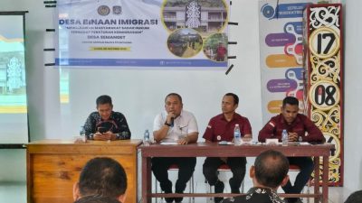 Entikong, IndoTimeNews.com – Dalam upaya mewujudkan masyarakat yang semakin sadar hukum dan memahami pentingnya aturan keimigrasian, Kantor Imigrasi Kelas II TPI Entikong menyelenggarakan kegiatan Desa Binaan Imigrasi di Desa Semanget, Kecamatan